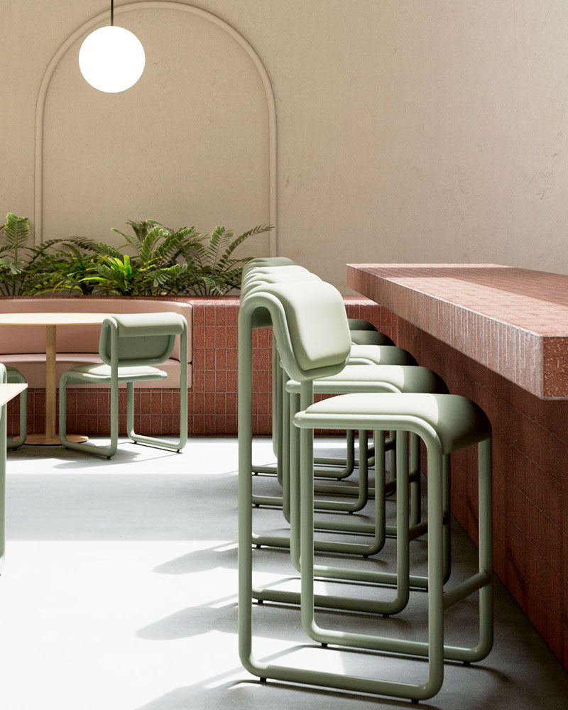 Bend: Architectural furniture designed in Los Angeles since 2010. We craft precision-bent powder coated steel, wire, and aluminum furniture engineered for indoor and outdoor durability. By combining sculptural metal with upholstery, wood, and terrazzo, we create versatile commercial seating for global hospitality and residential projects. Our designs seamlessly bridge the gap between mid-century grit, Italian 80s flair, and Japandi minimalism to define a modern architectural aesthetic.