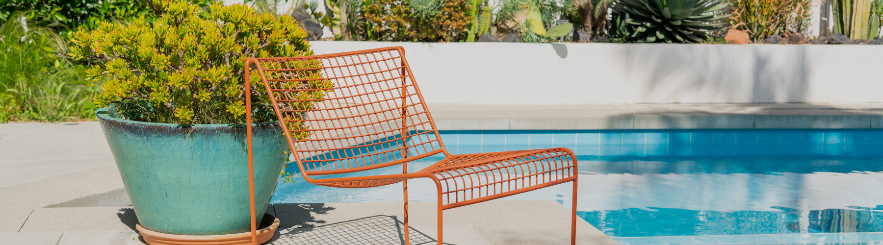 The result? A modern outdoor lounge chair with a wide-set frame, comfortable recline, and minimal silhouette that feels just as at home on a residential patio as it does in a café, poolside deck, or boutique hotel.