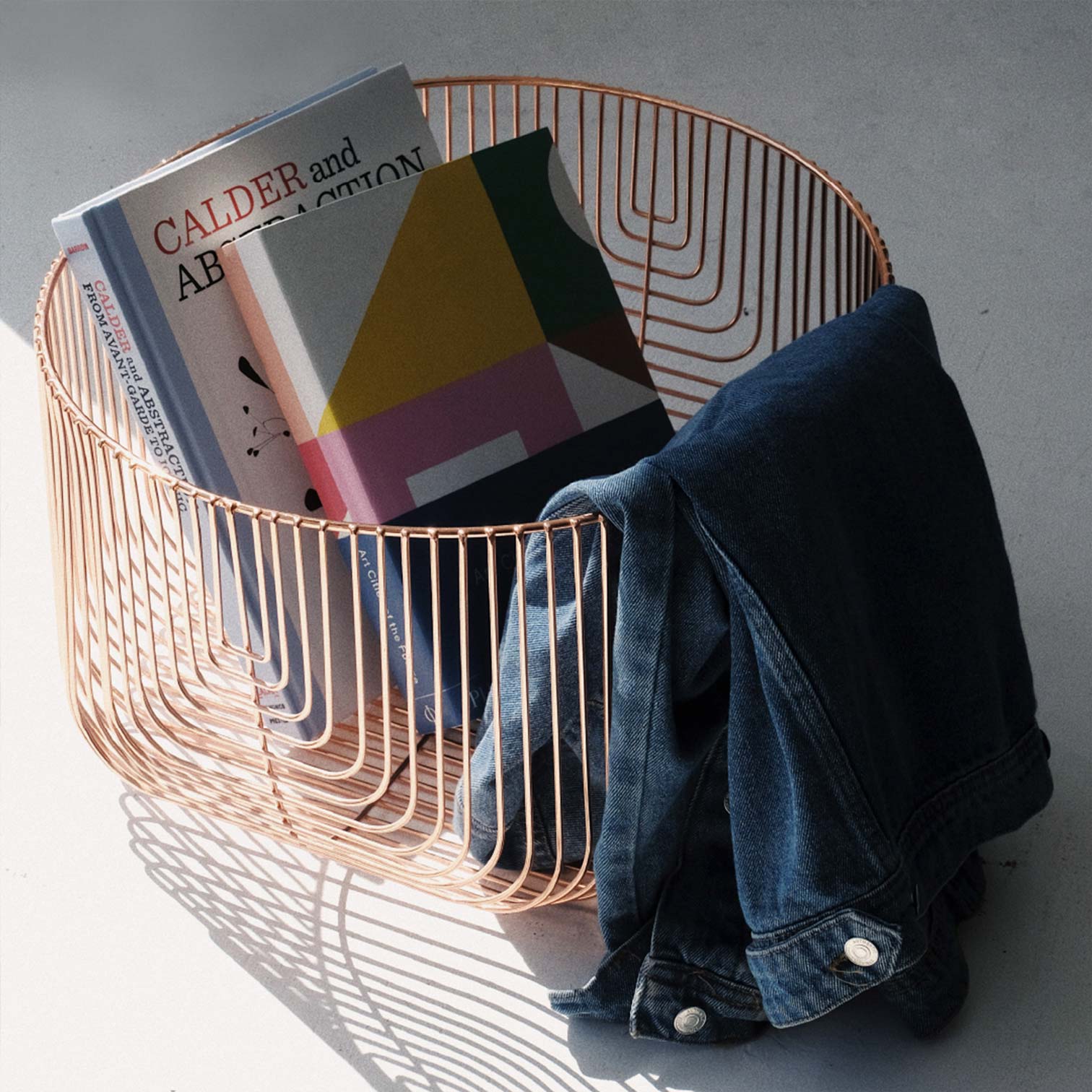 The open wire pattern allows you to show off your décor and store it in style. Metallic finishes add an elegant shine to this modern home accessory; check out our Gold and Copper baskets.